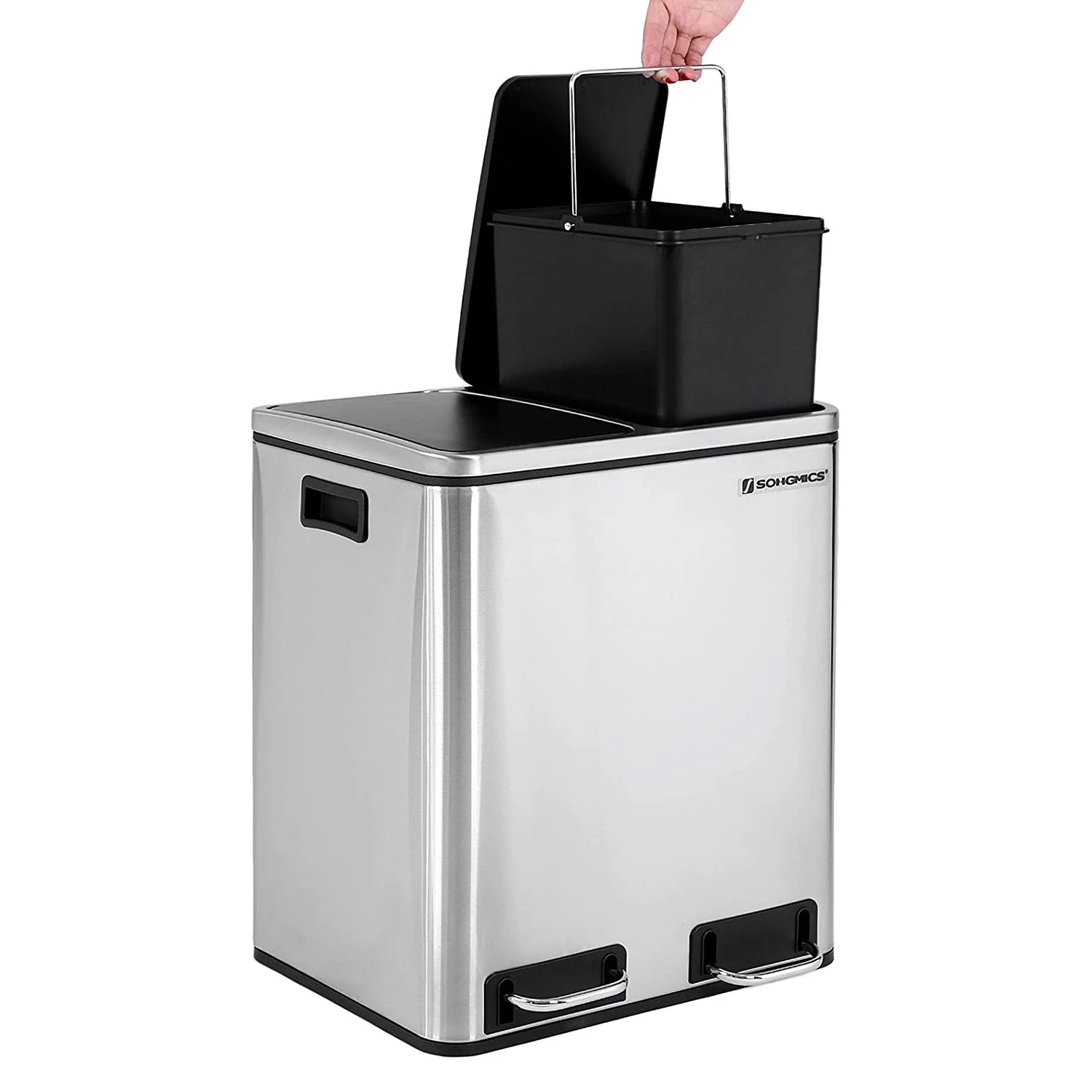 Songmics Poubelle Montferrat I – Acier inoxydable / Polypropylène – Noir
