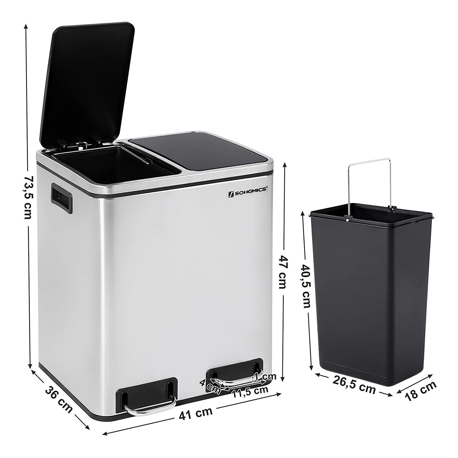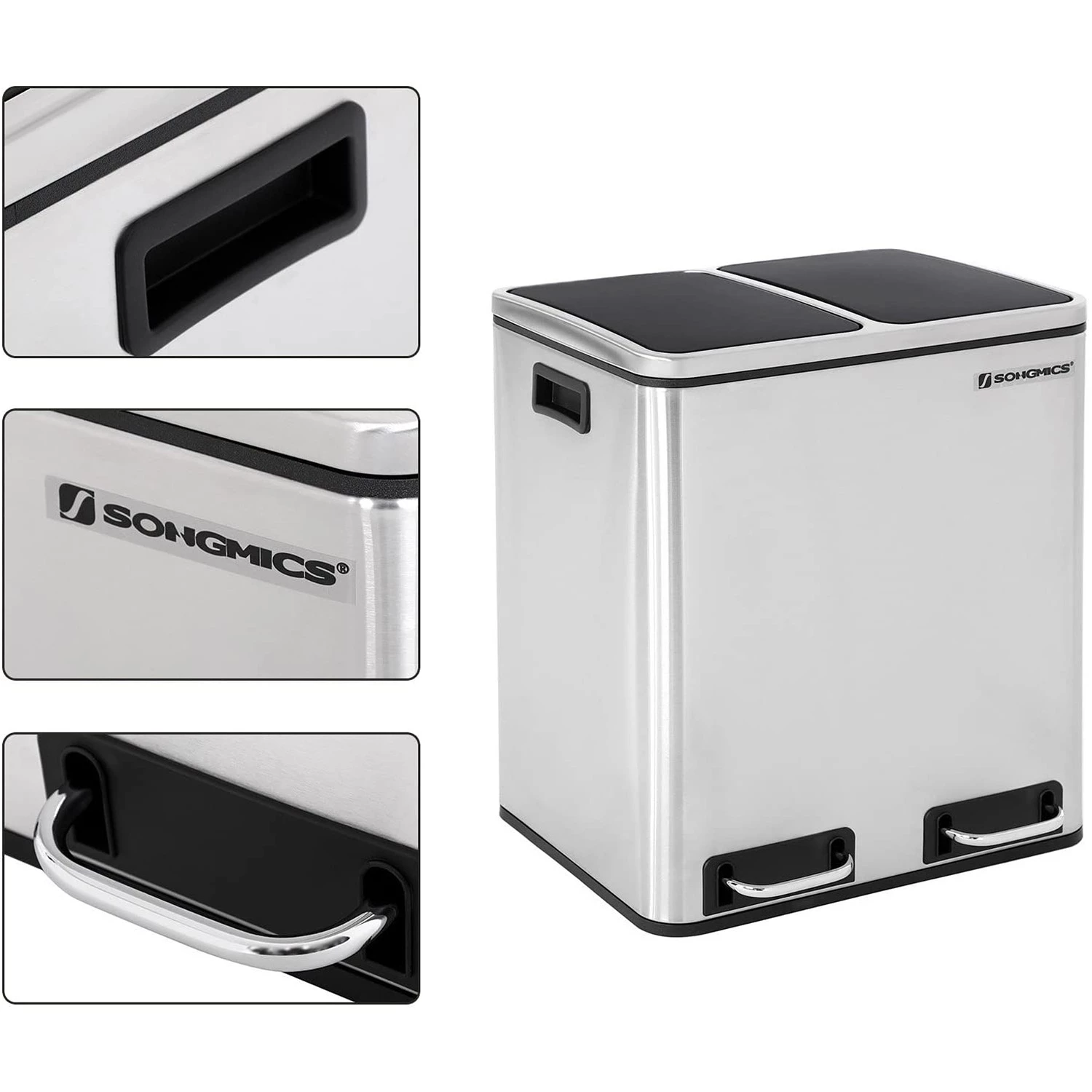 Songmics Poubelle Milizac III – Acier / Matière plastique – Noir / Blanc