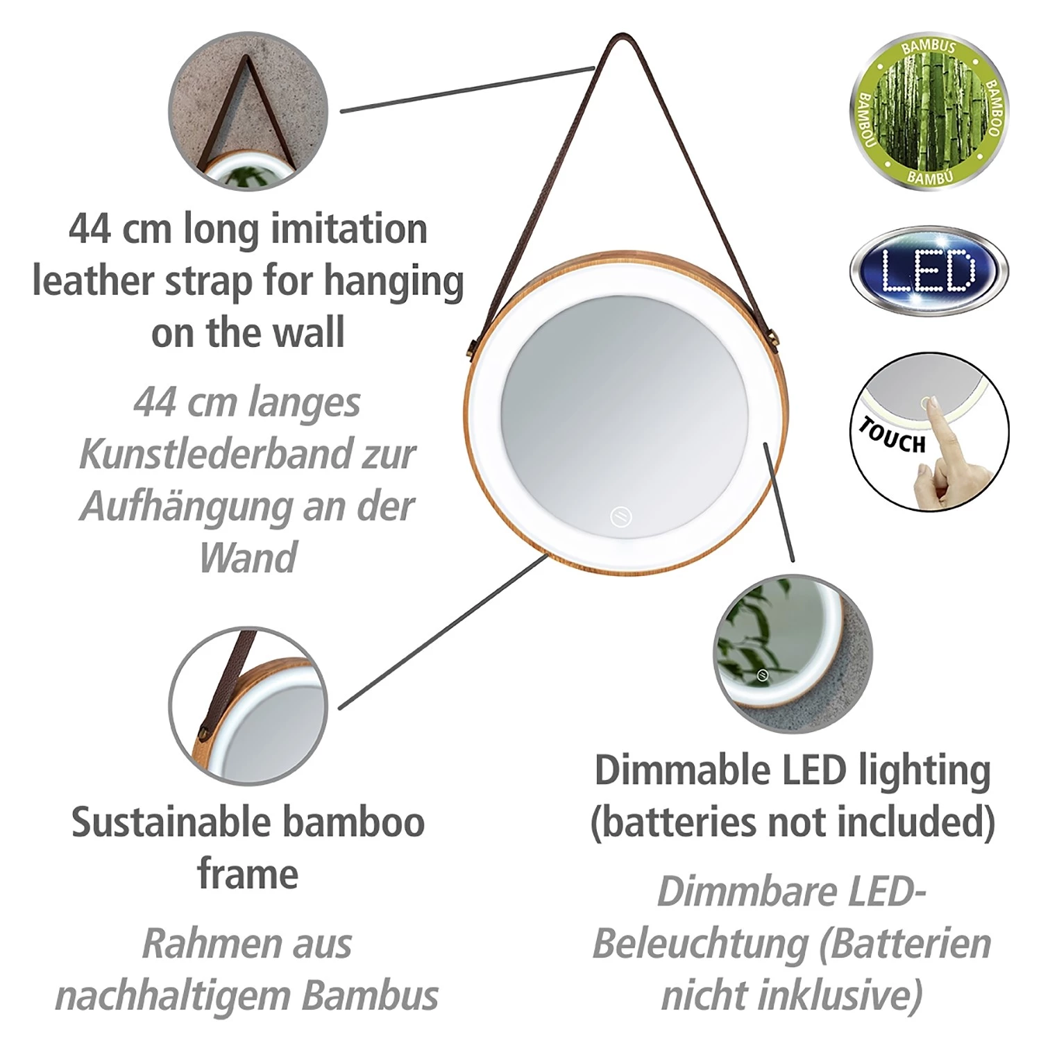 WENKO Miroir à poser avec lampe LED – Grossissement x 3 – Métal